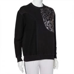 Stella McCartney Black Cotton Knit Paisley Jacquard Patch Detail Sweatshirt S For Women