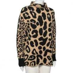 Stella McCartney Beige Leopard Print Cotton & Alpaca Intarsia Knit Sweater S For Women