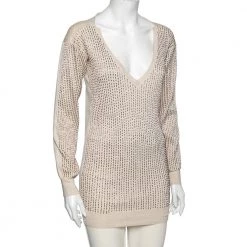 Stella McCartney Beige Knit Linen Paneled Cut-Out Detail Jumper XXS For Women