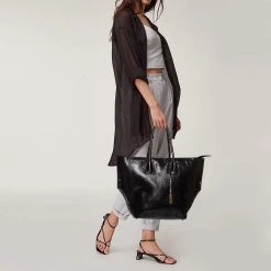 Stella McCartney Black Faux Lizard Embossed Leather Crystal Embellished Wristlet Clutch For Women