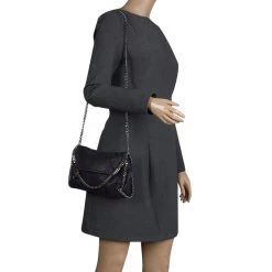 Stella McCartney Navy Blue Croc Embossed Faux Leather Falabella Star Box Bag For Women