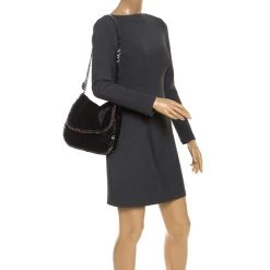 Stella McCartney Black Croc Embossed Faux Leather Medium Falabella Star Box Bag For Women