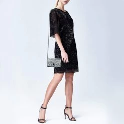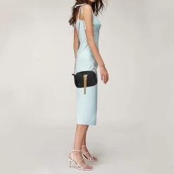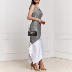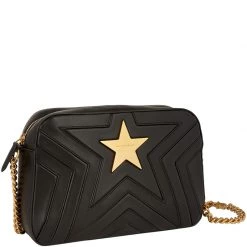 Stella McCartney Black Leather Tiny Hawallan Embroidered Top Handle Shoulder Bag For Women