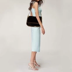 Stella McCartney Brown Quilted Faux Suede Studded Falabella Flap Shoulder Bag For Women