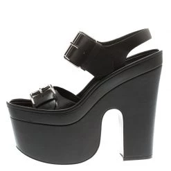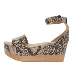 Stella McCartney Beige Faux Patent Leather Linda Leopard Print Cork Wedge Sandals Size 36 For Women